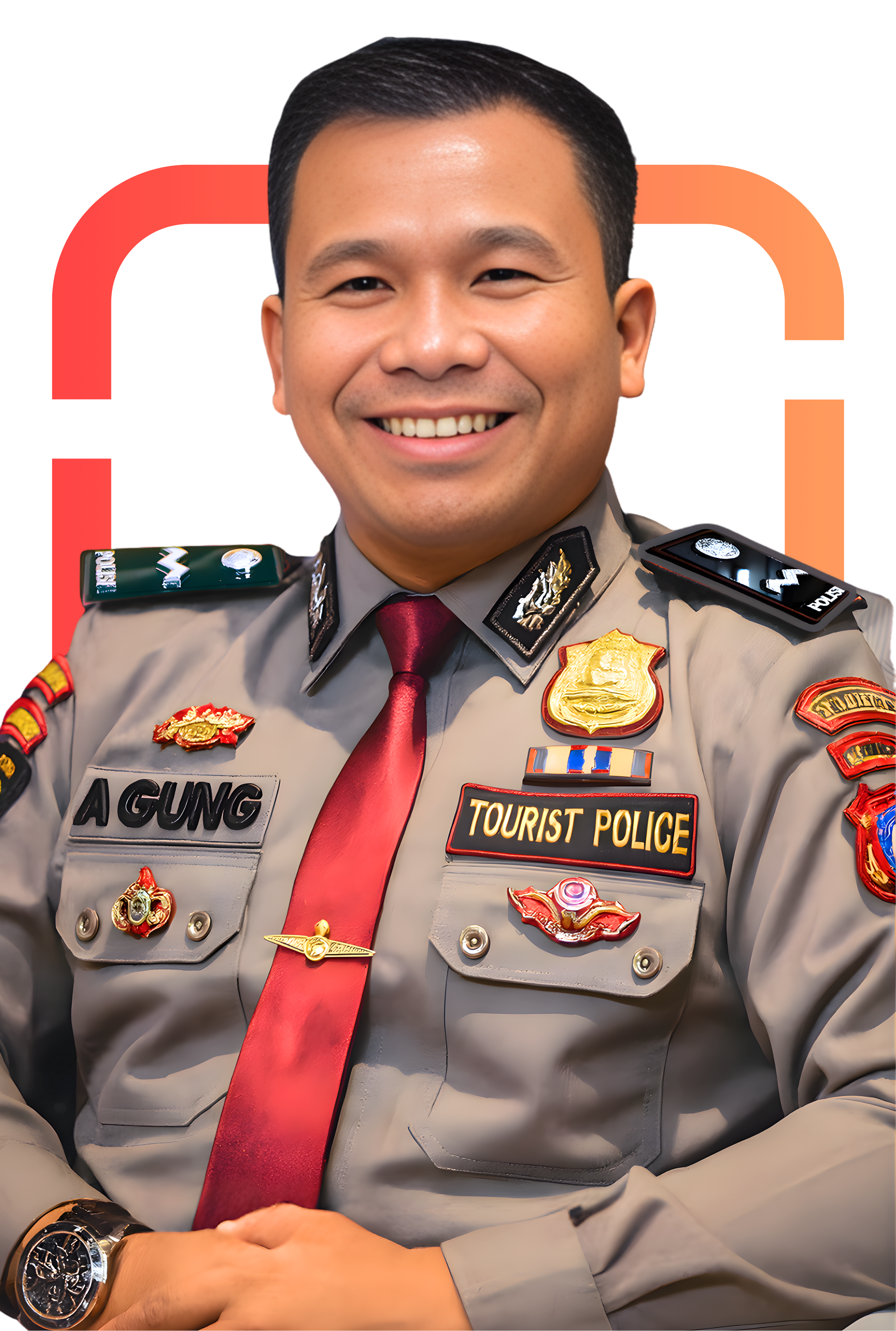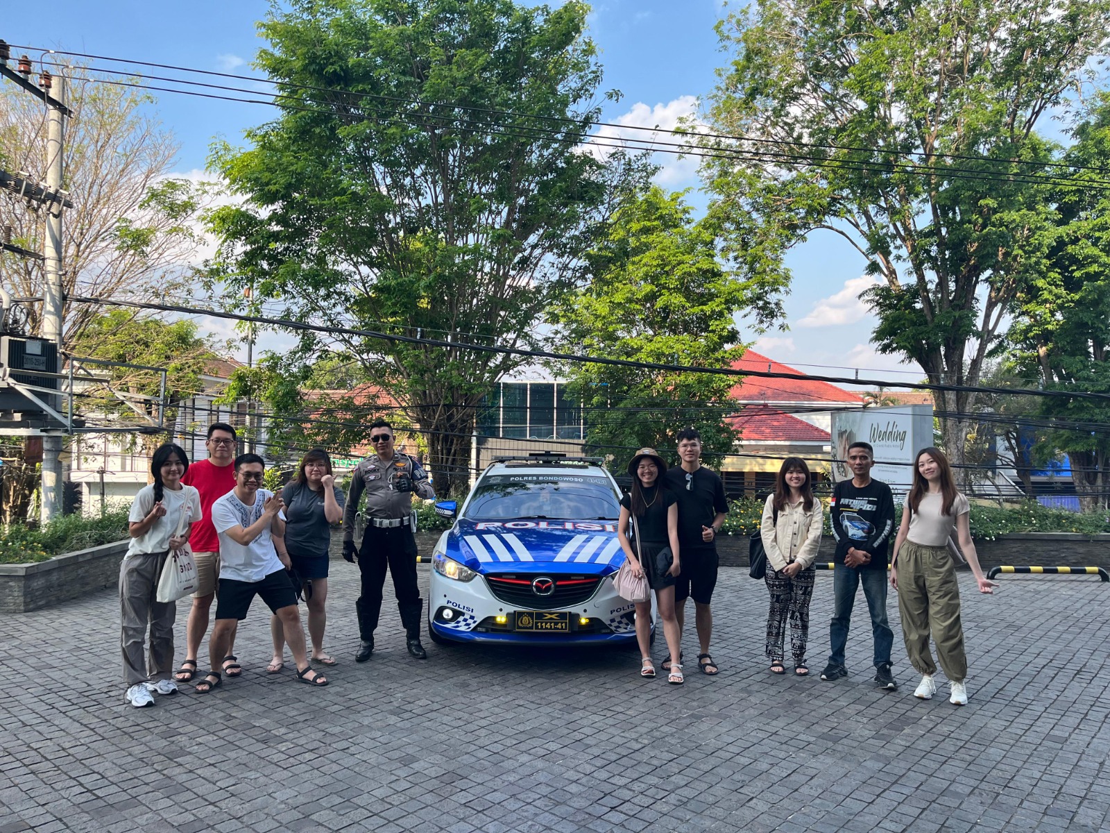 Traffic Police escorted arrival at the hotel in Bondowoso group photo with the patrol car